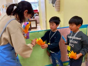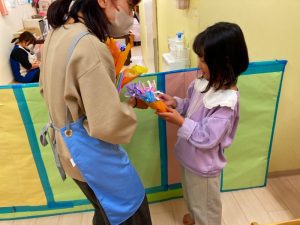 そしてお返しに年長さんからお手紙とお花のプレゼントをしました❀